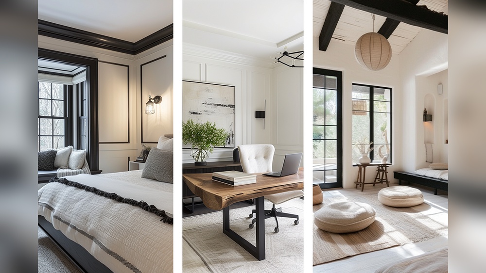Mixing black trim with white walls highlights architectural details. It frames windows, doors, and baseboards sharply. This contrast draws the eye and defines each element clearly.