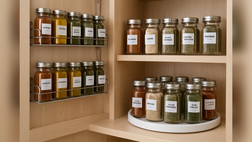 Group spices by type and use labeled racks or drawer inserts. This method improves visibility and speeds up cooking by keeping spices within arm’s reach.