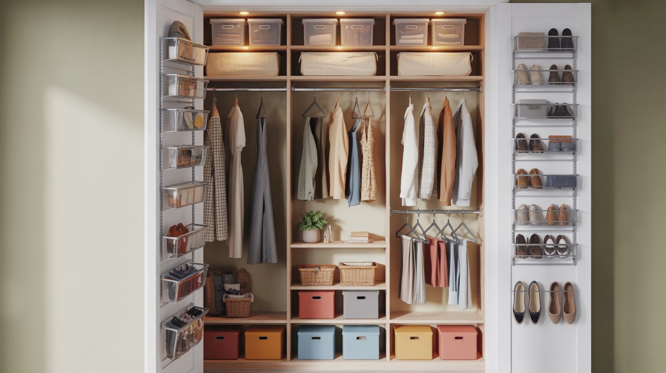 Hanging shoe organizers on the back of the door or adding tiered shelving can keep your shoes neat and accessible.